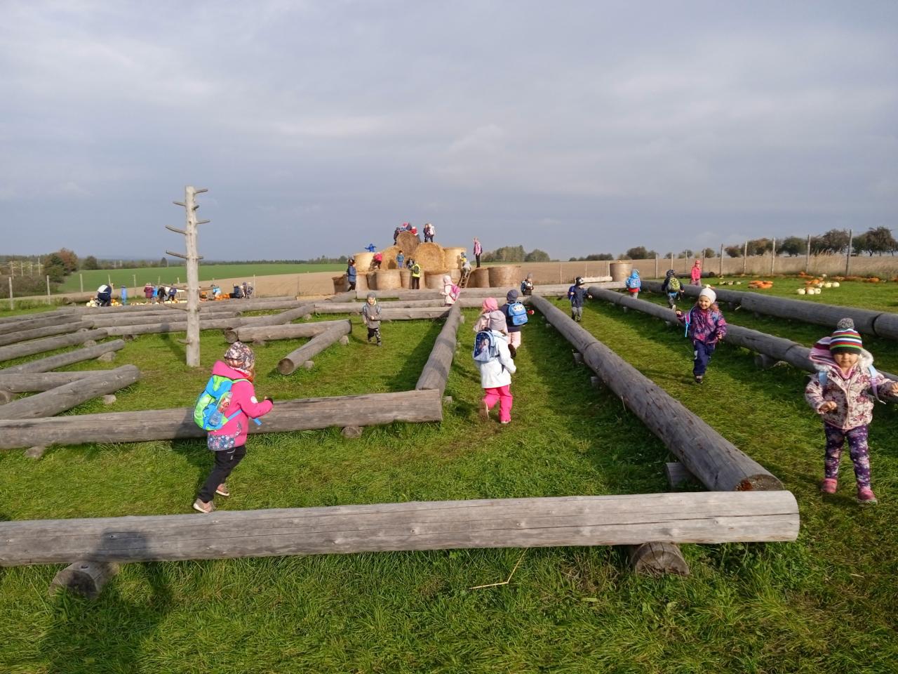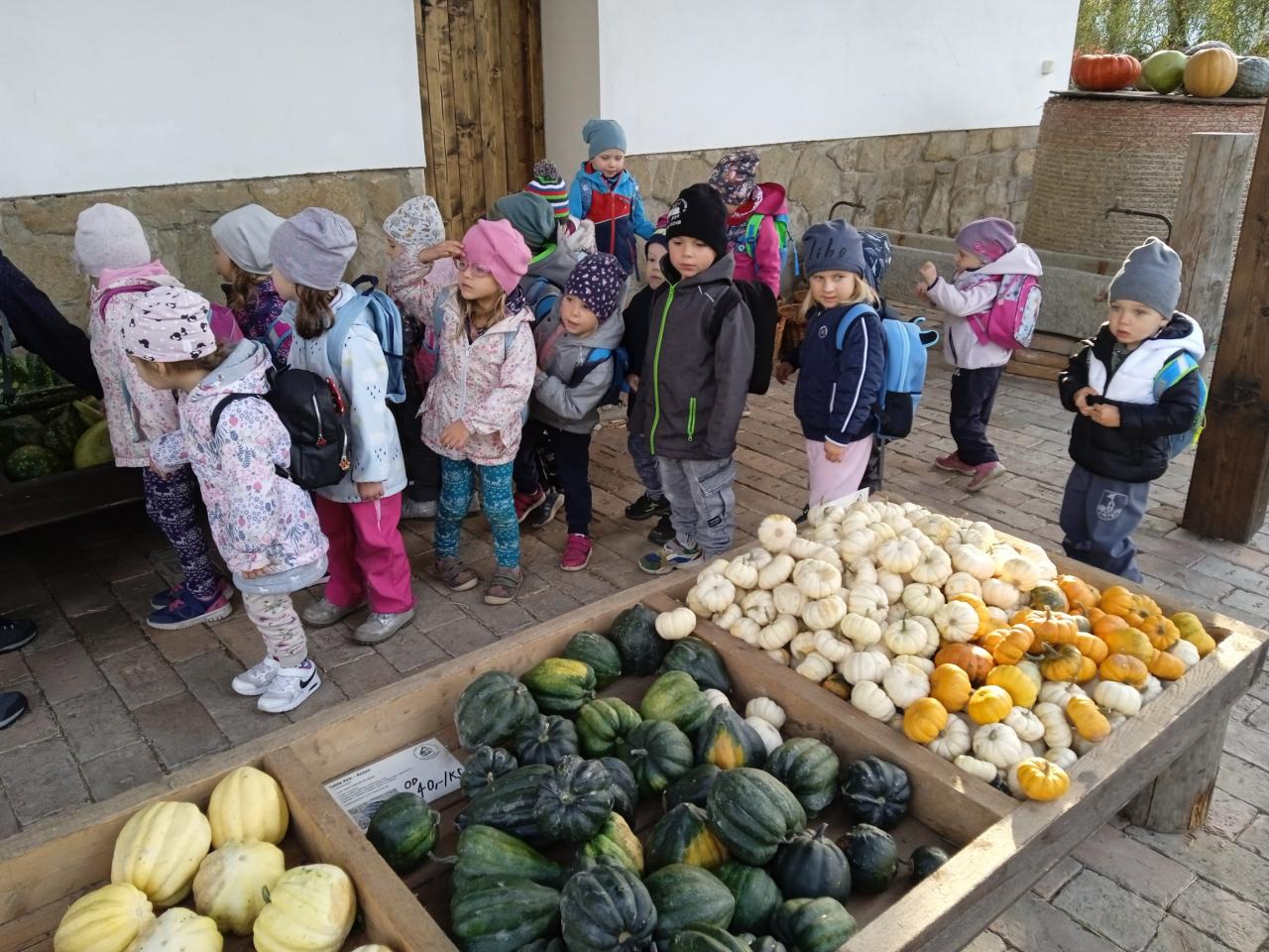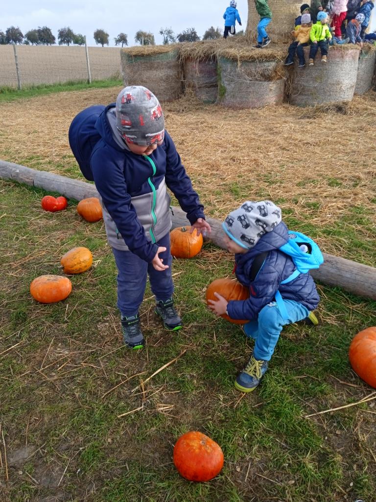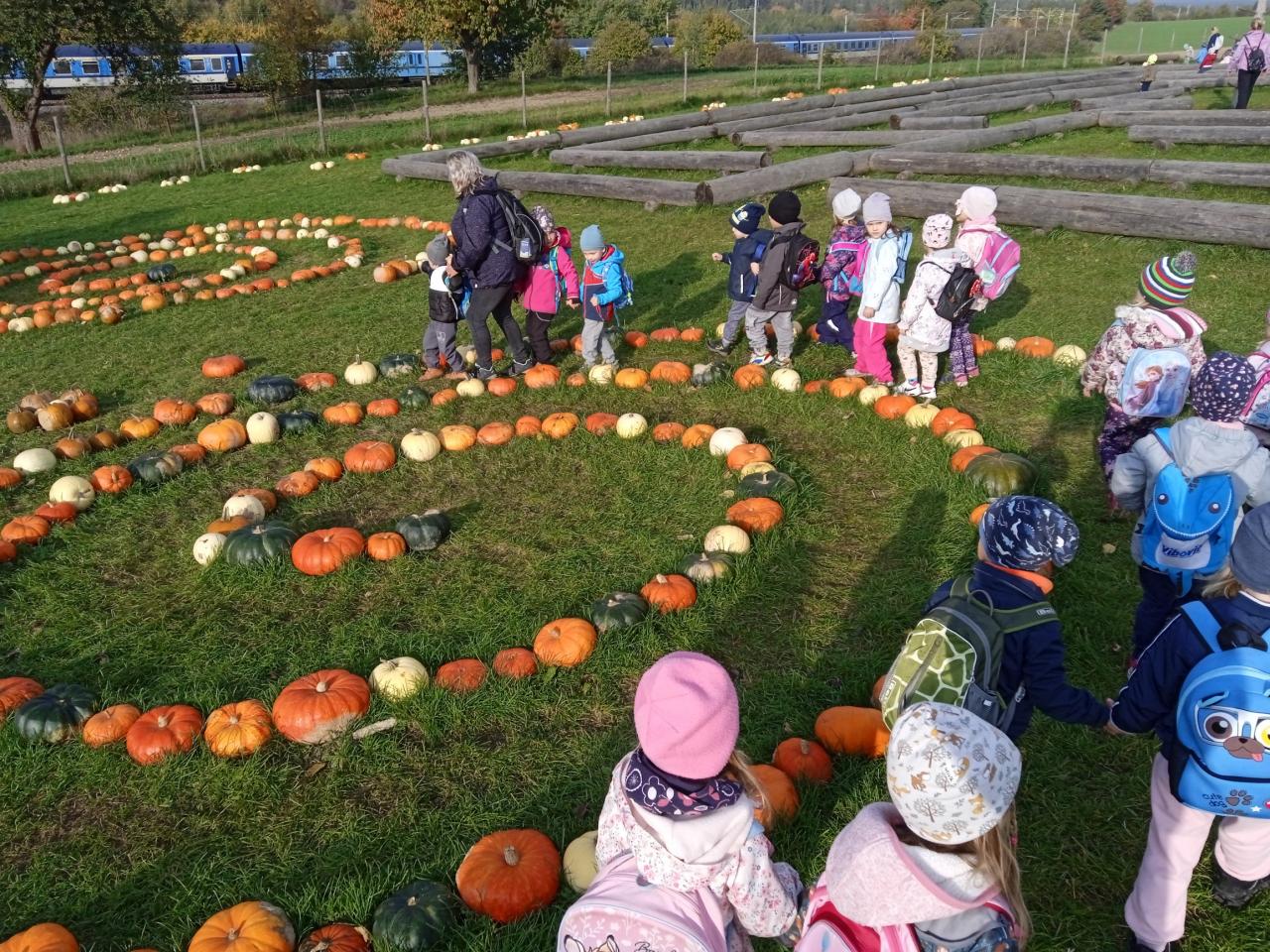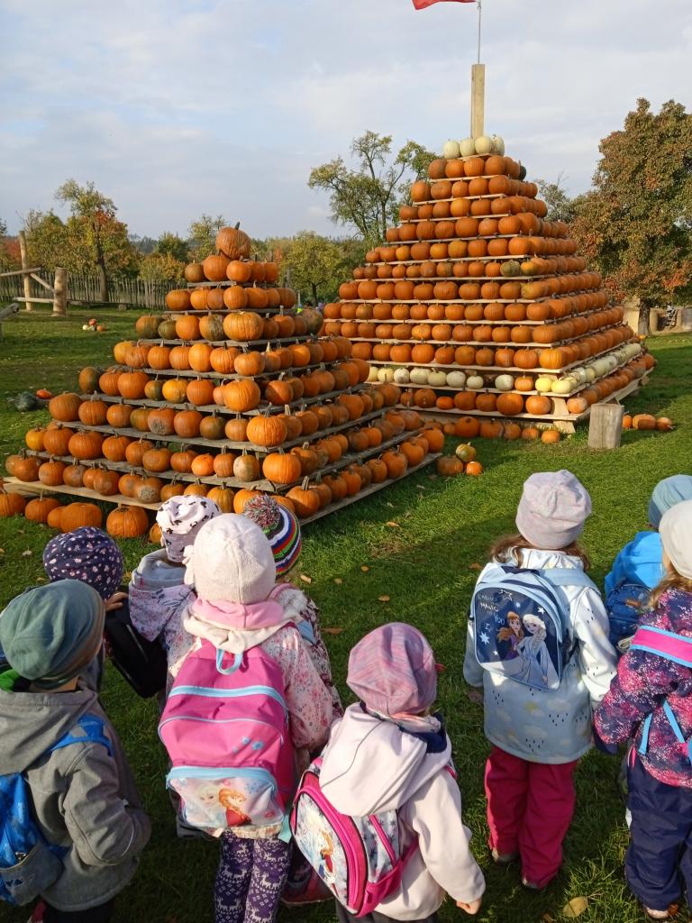 Autobus nás zavezl na statek u Pipků v Nové Vsi u Leštiny. Tam na děti čekalo mnoho zábavy v podobě nejrůznějších dýňových labyrintů, prolézaček, slámových atrakcí a zvířátek. Děti zde viděly dýně nejrůznějších tvarů i barev a výlet si velmi užily.