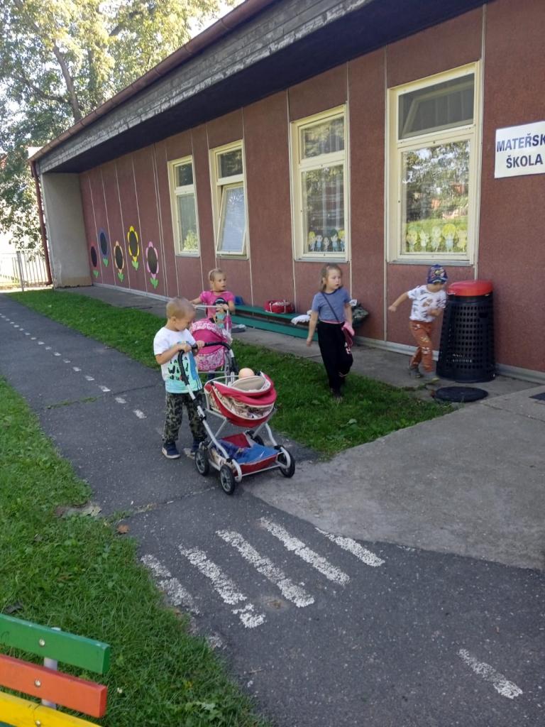 Činnosti dětí na zahradě v adaptačním týdnu.