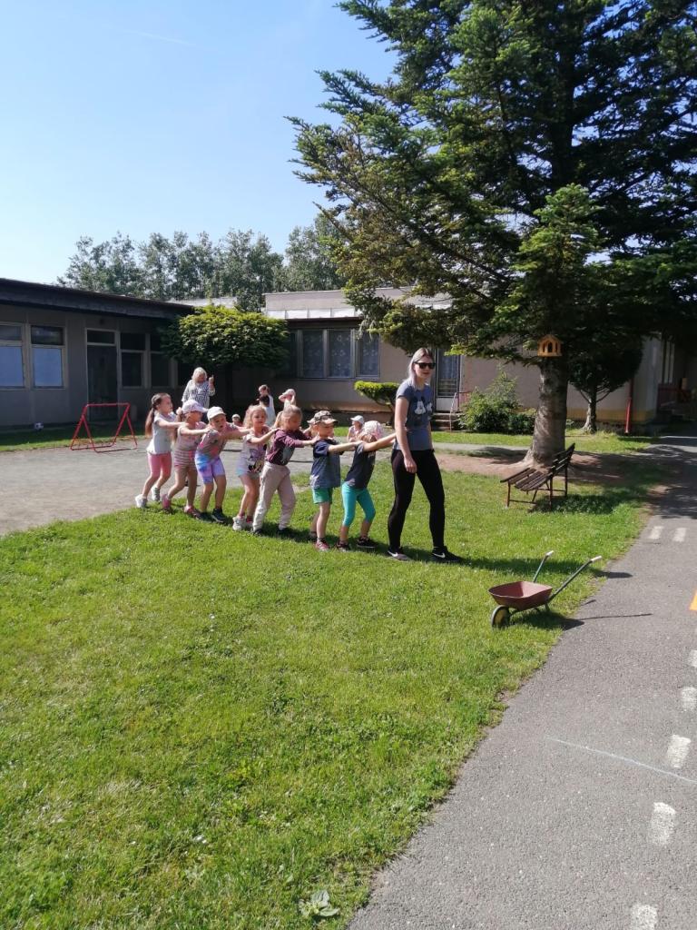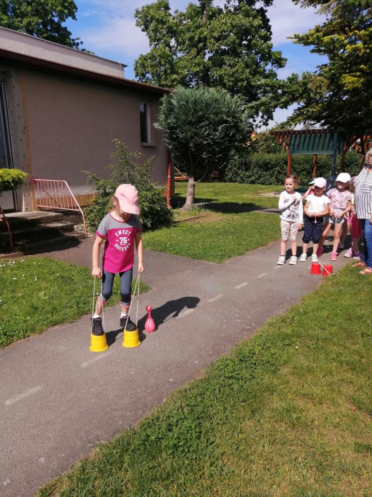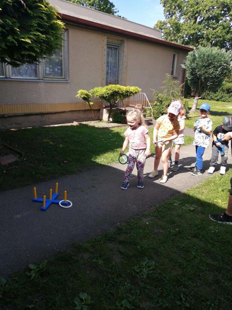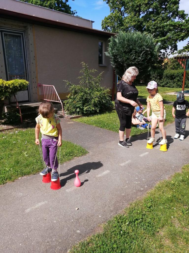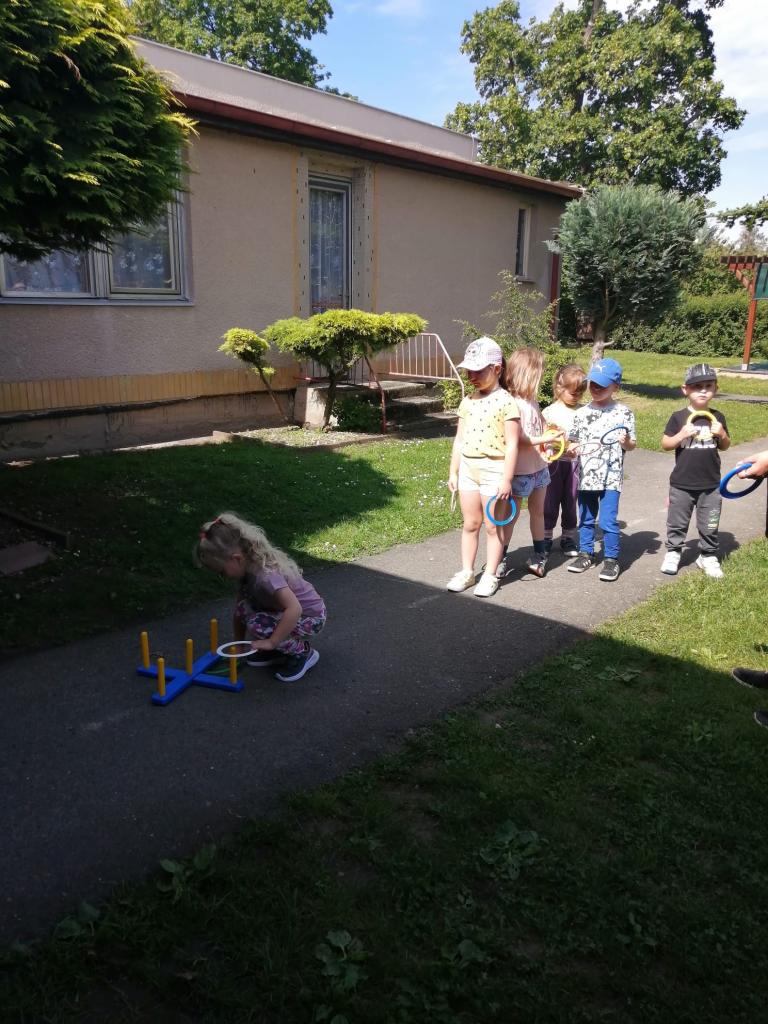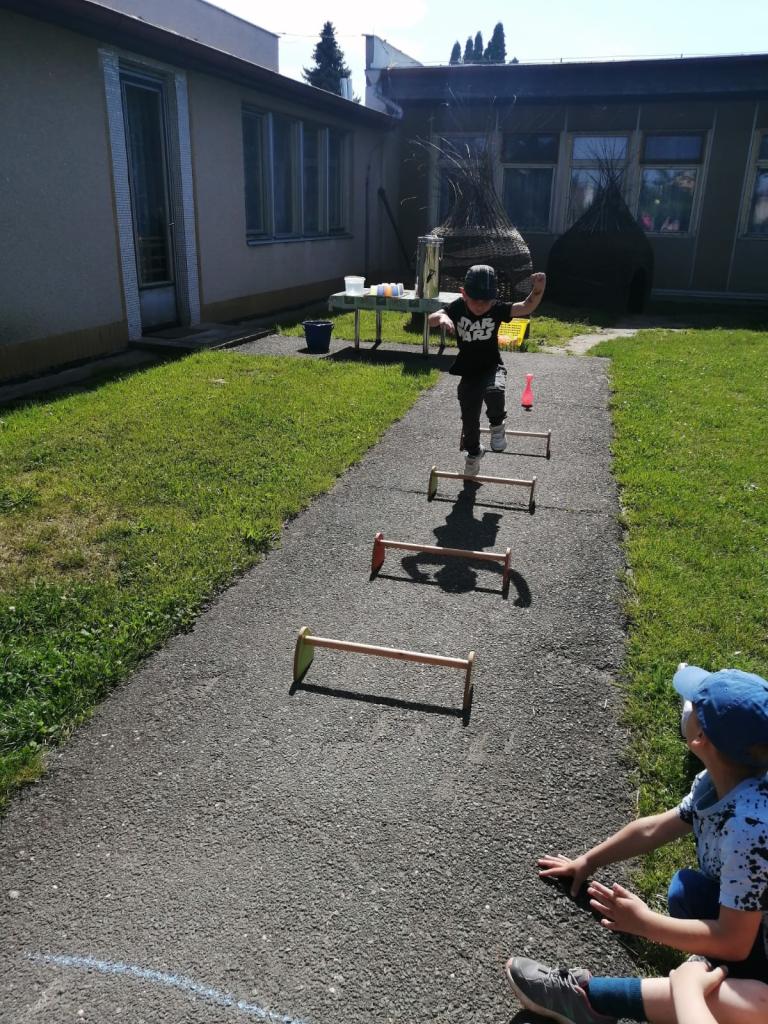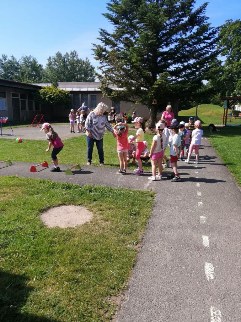 Sportovní olympiáda na školní zahradě ke dni dětí.