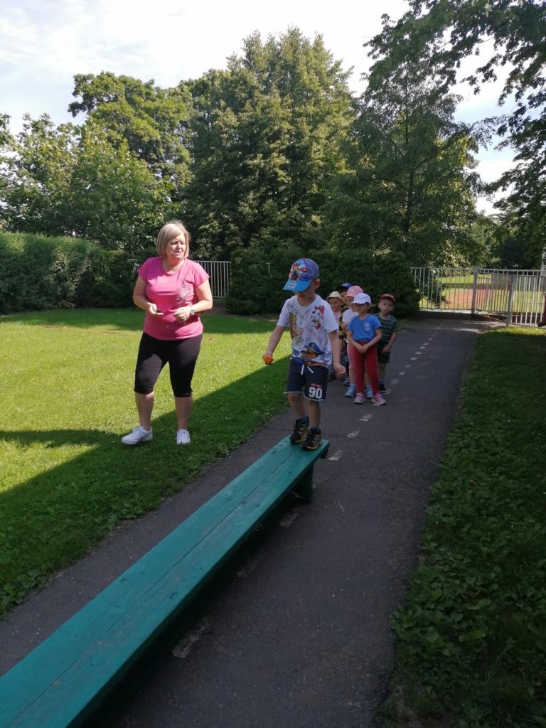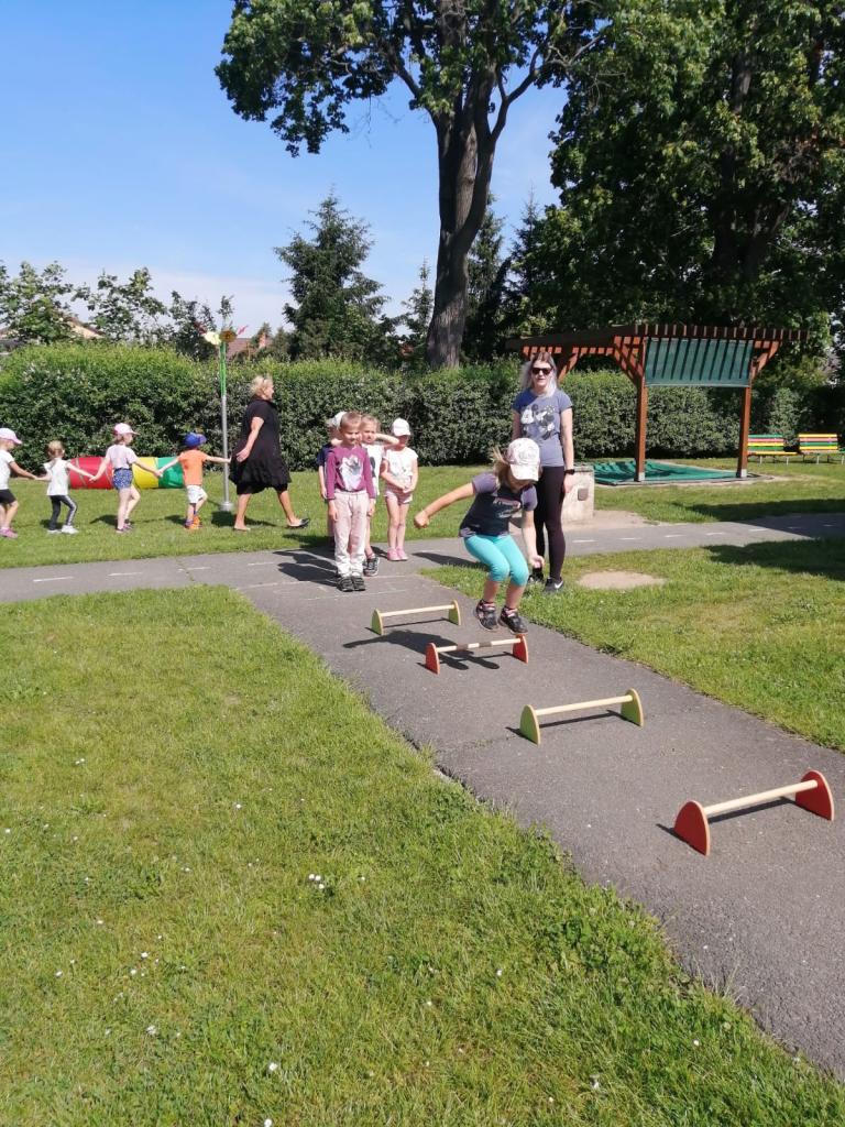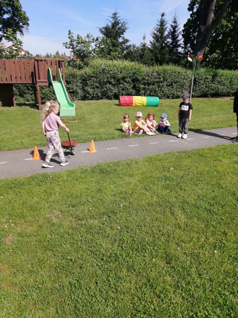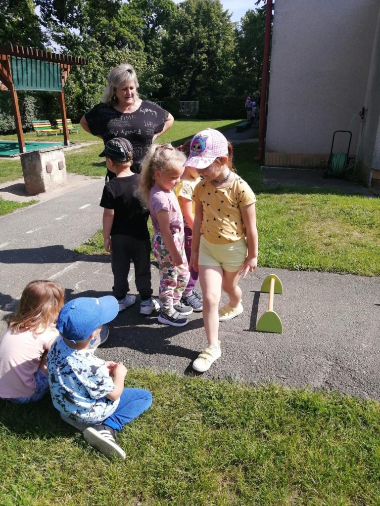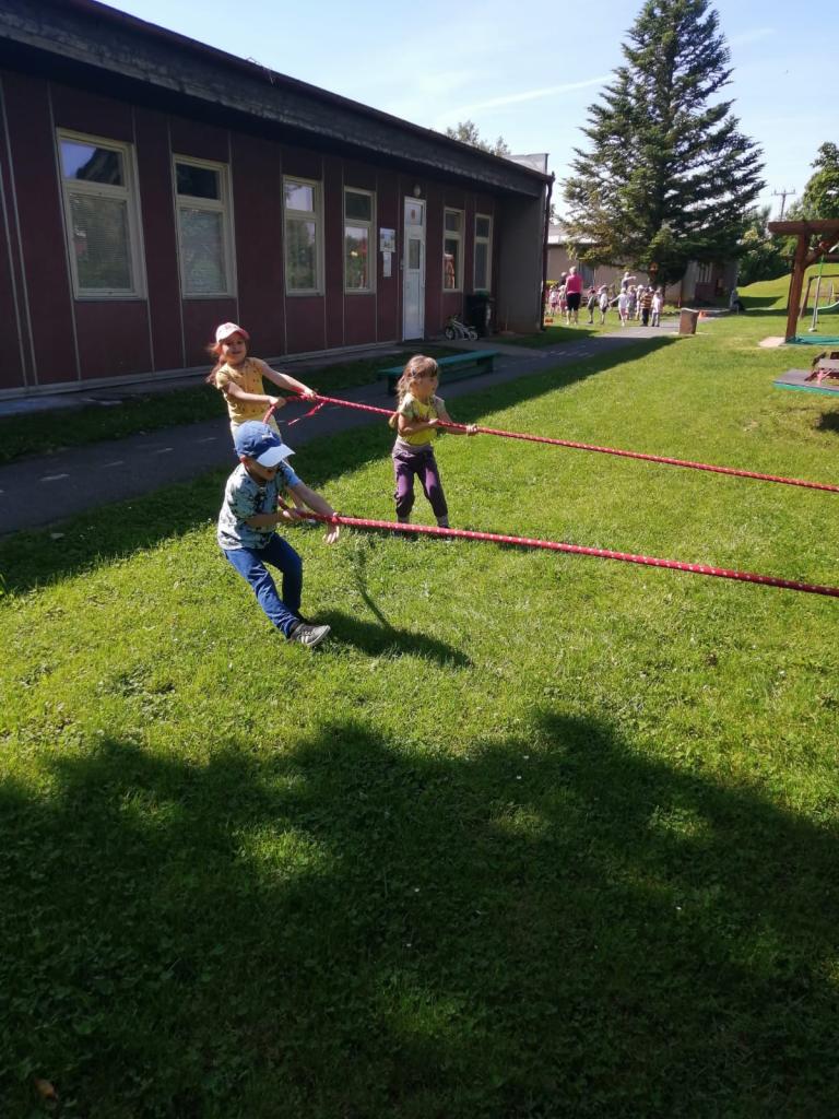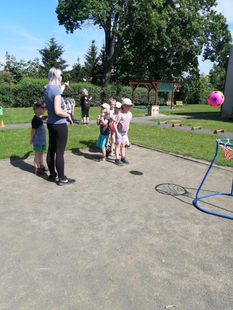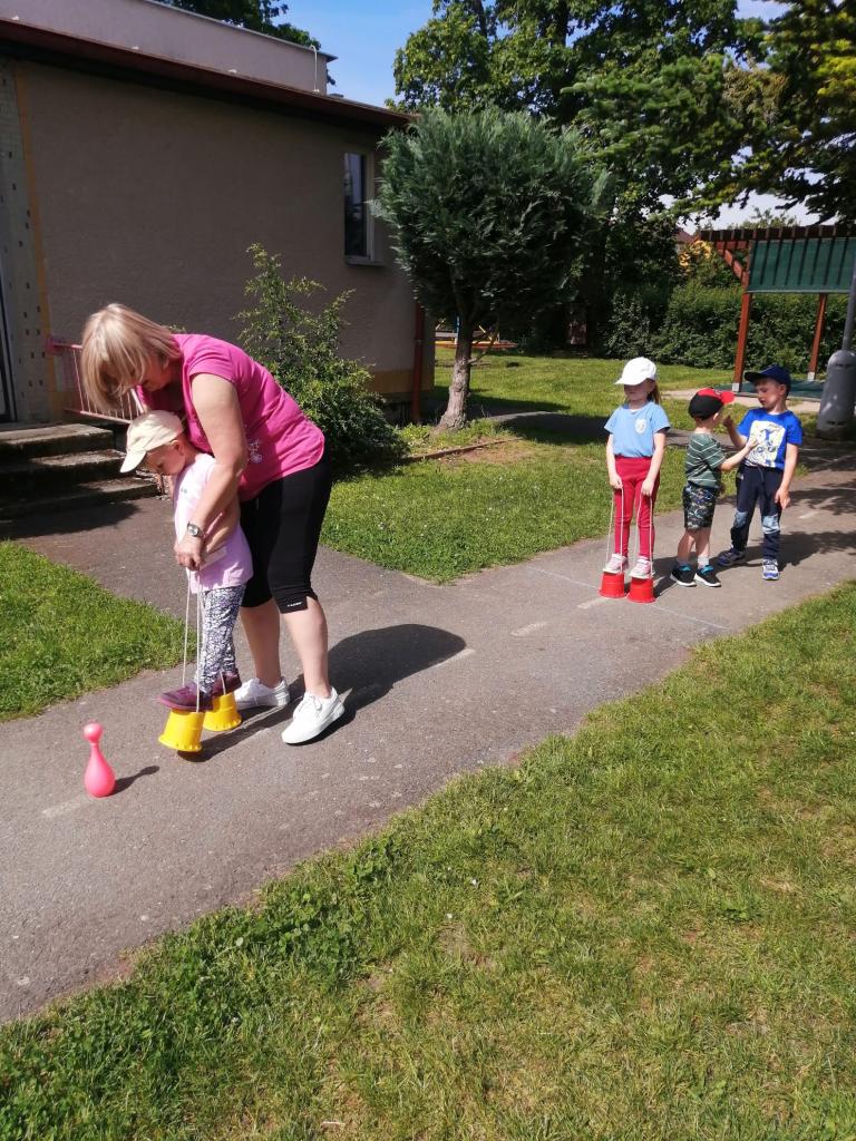 Sportovní olympiáda na školní zahradě ke dni dětí.