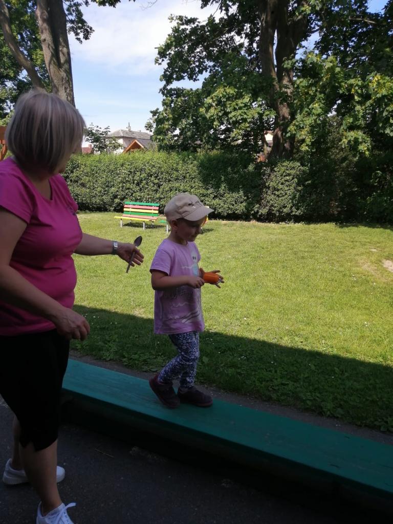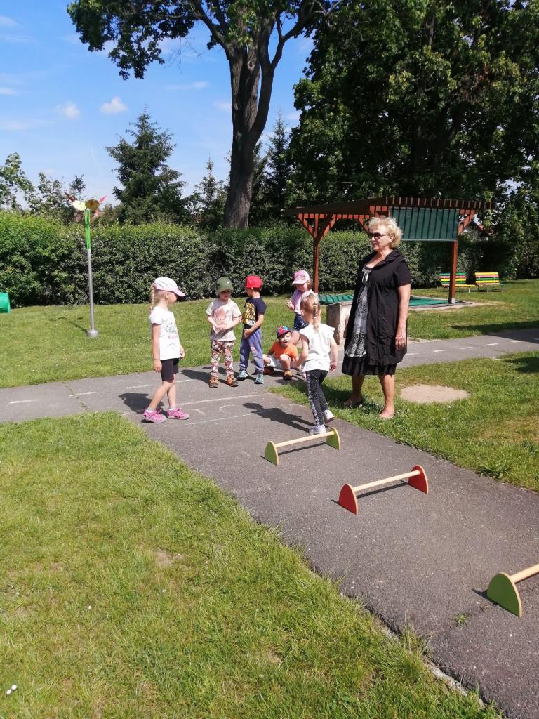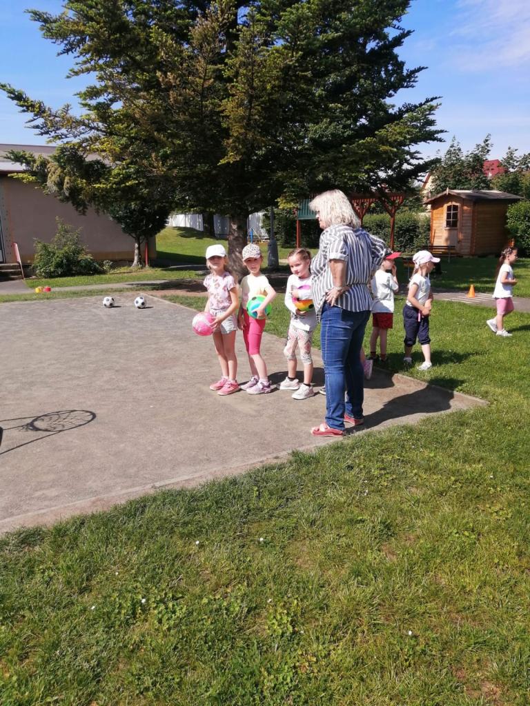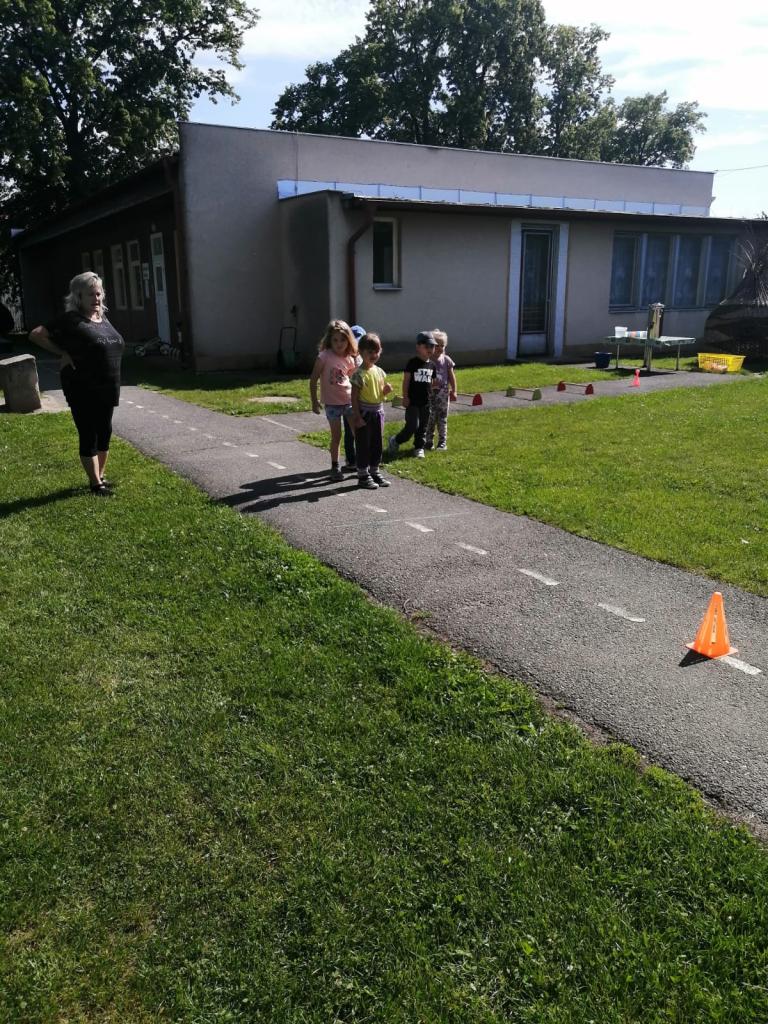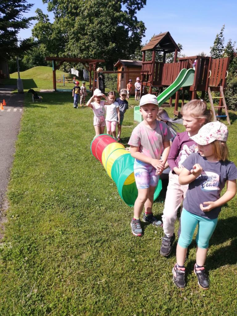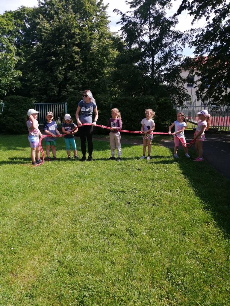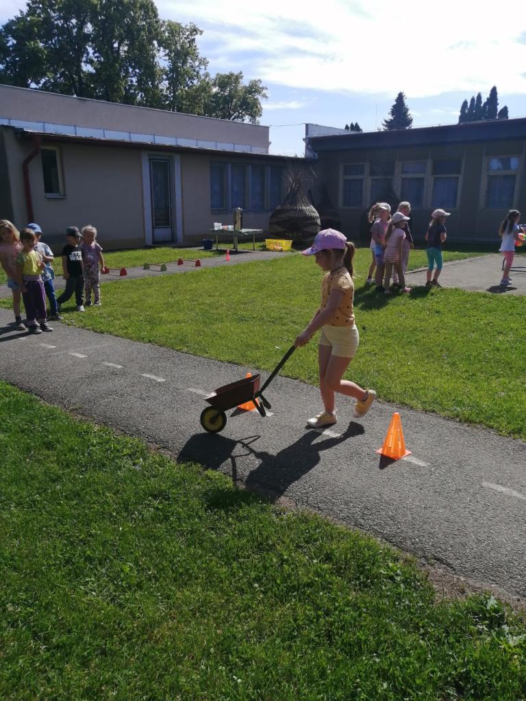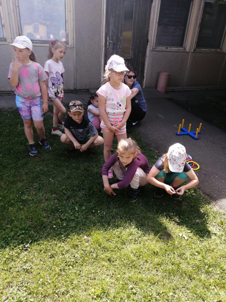 Sportovní olympiáda na školní zahradě ke dni dětí.