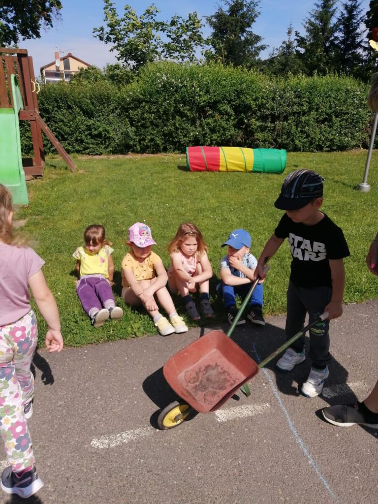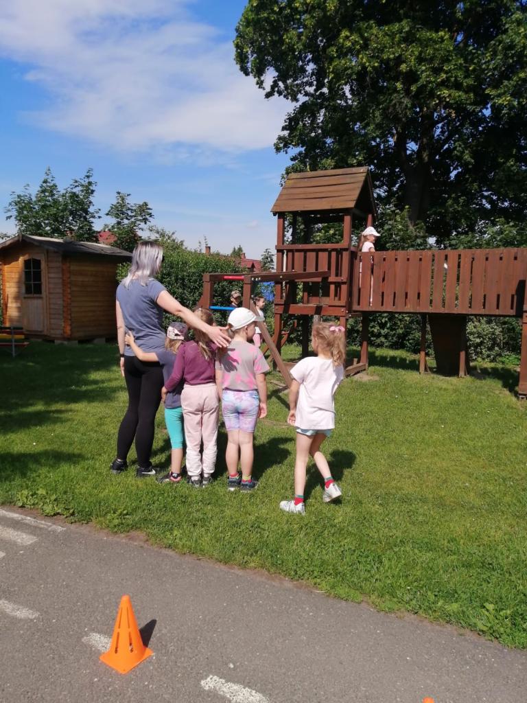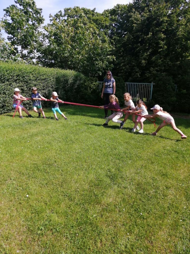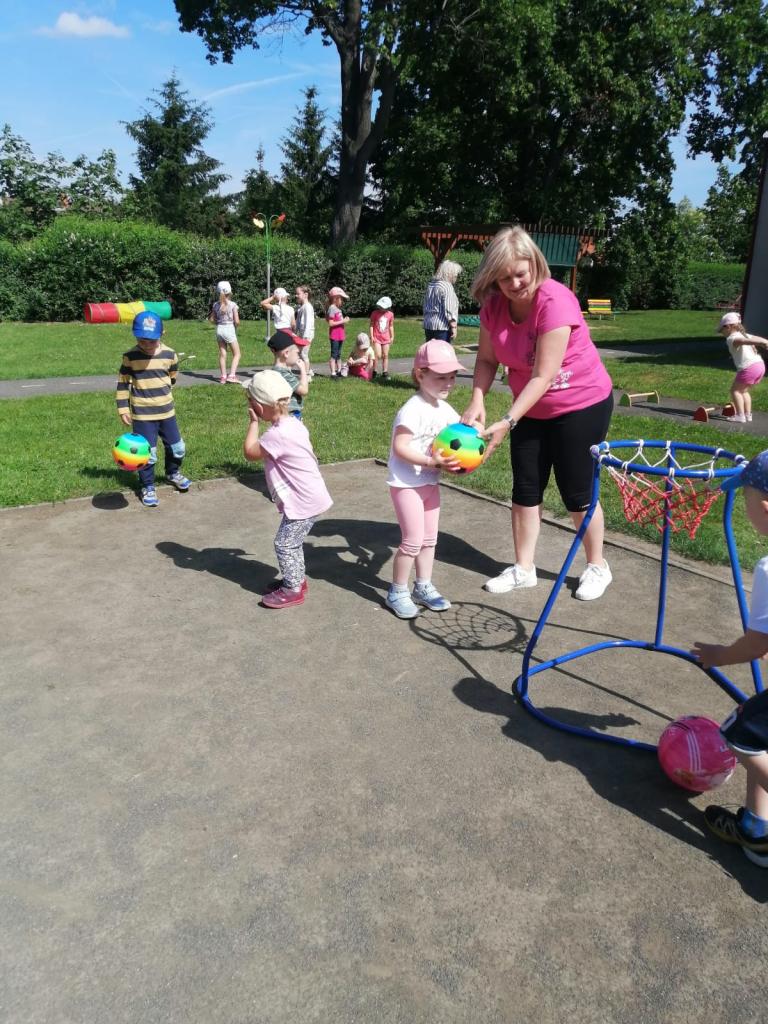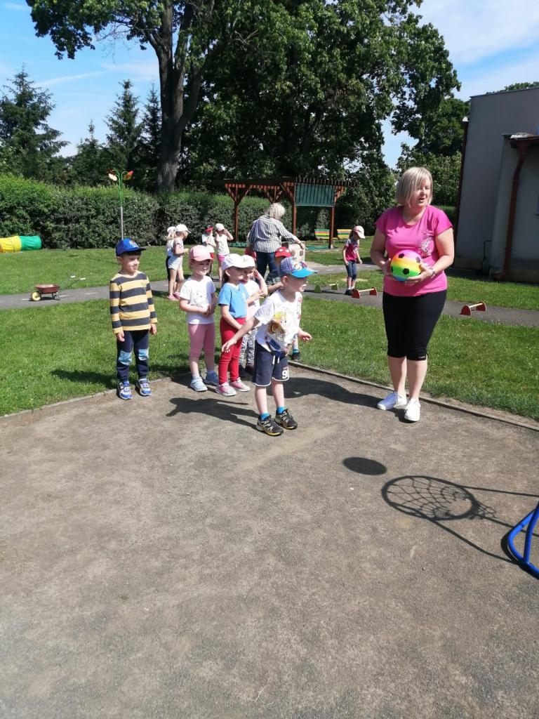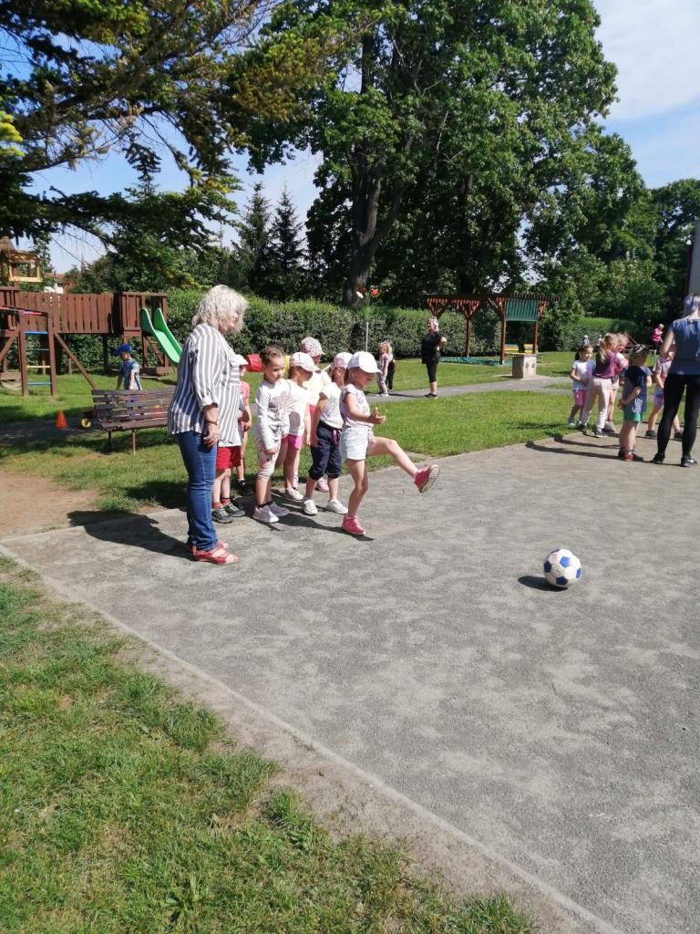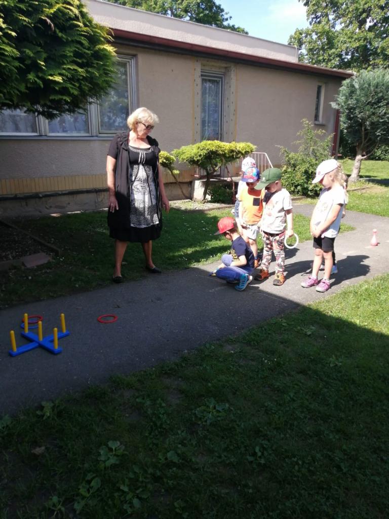 Sportovní olympiáda na školní zahradě ke dni dětí.