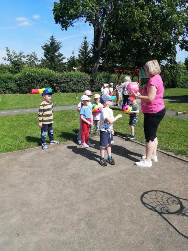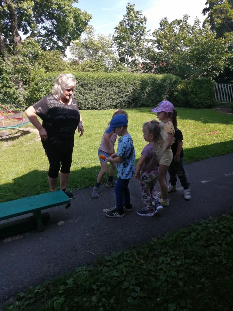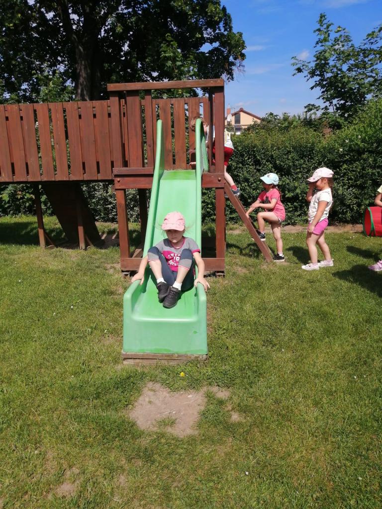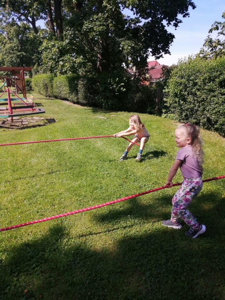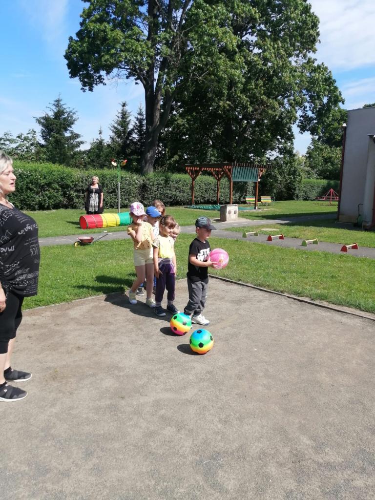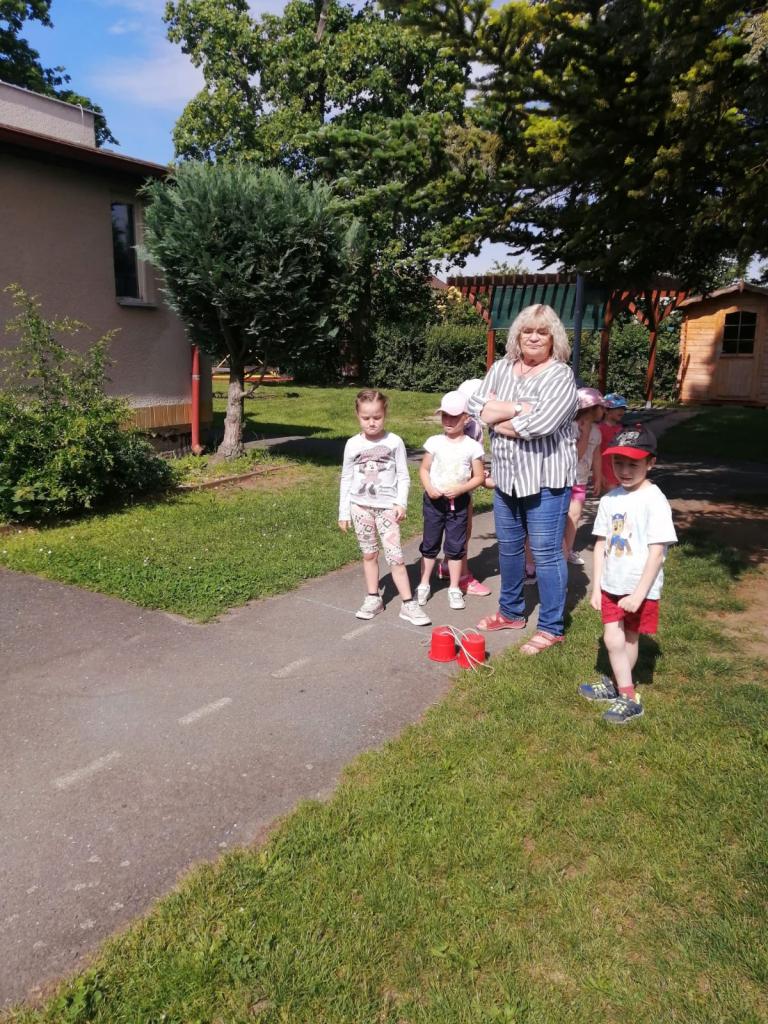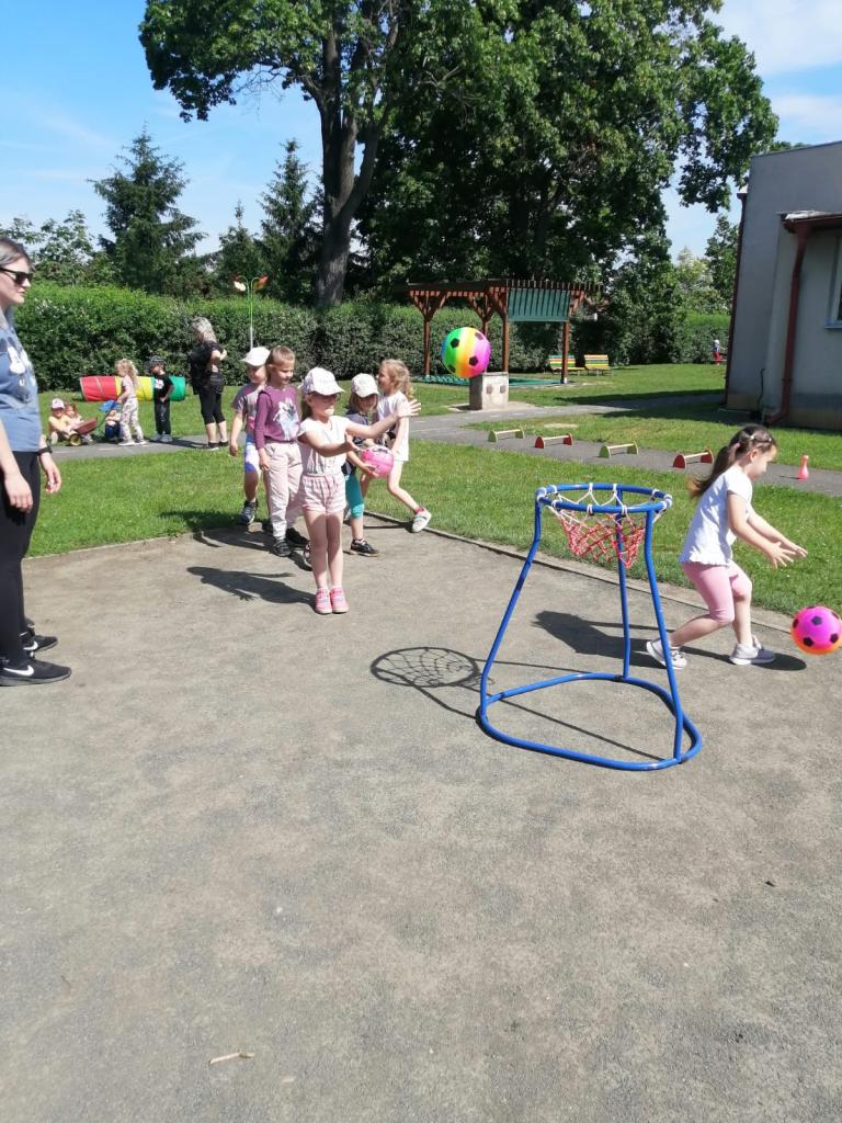 Sportovní olympiáda na školní zahradě ke dni dětí.