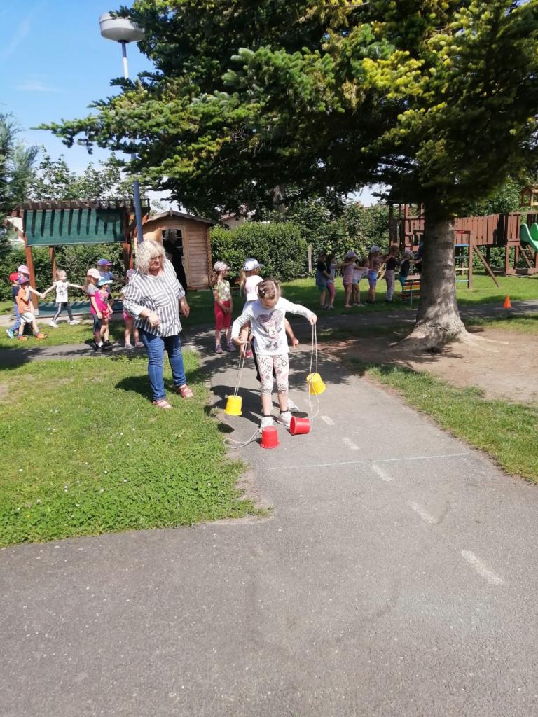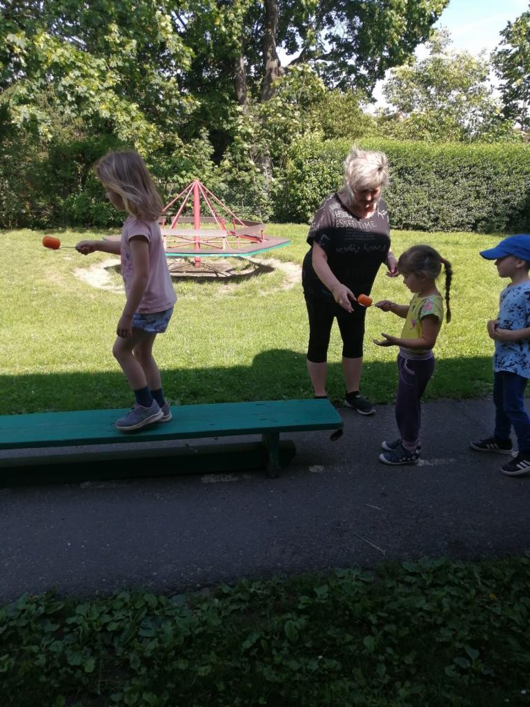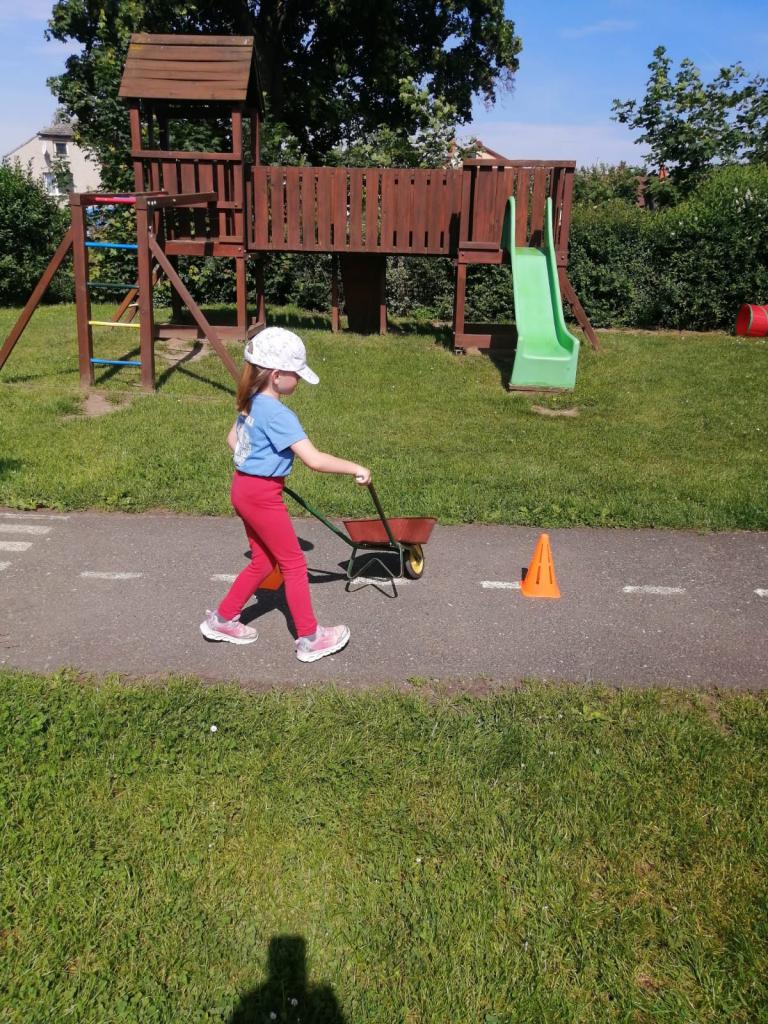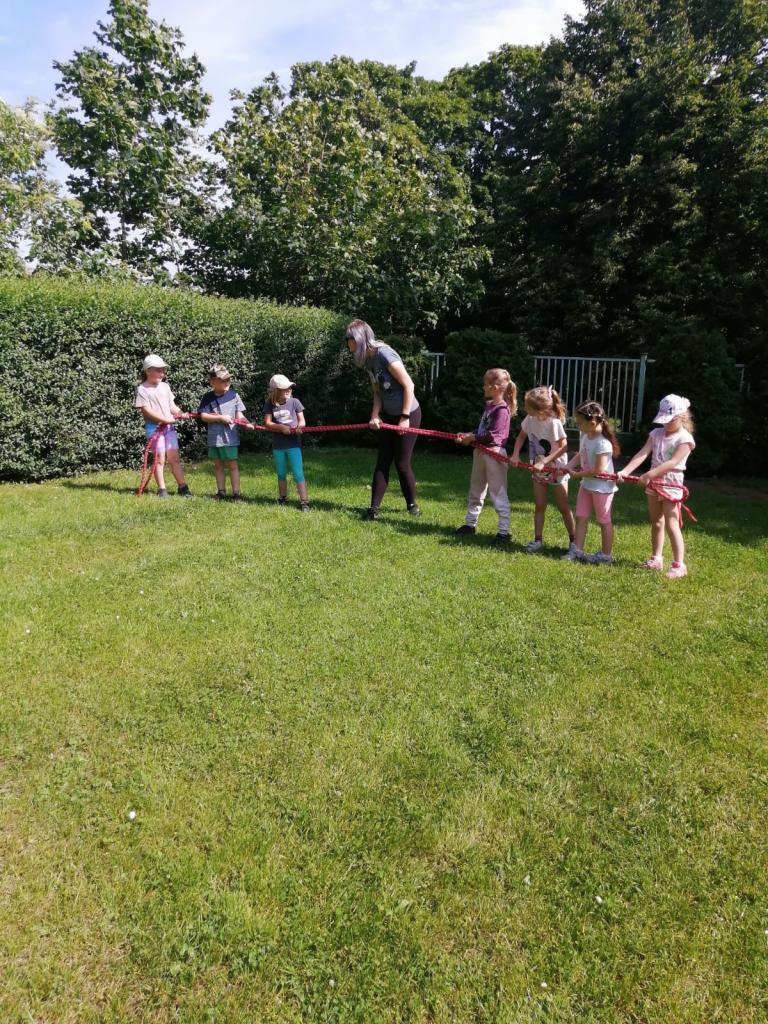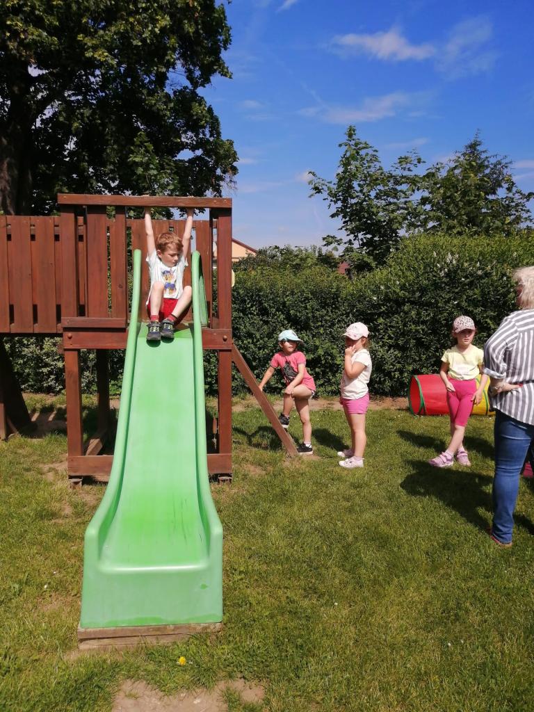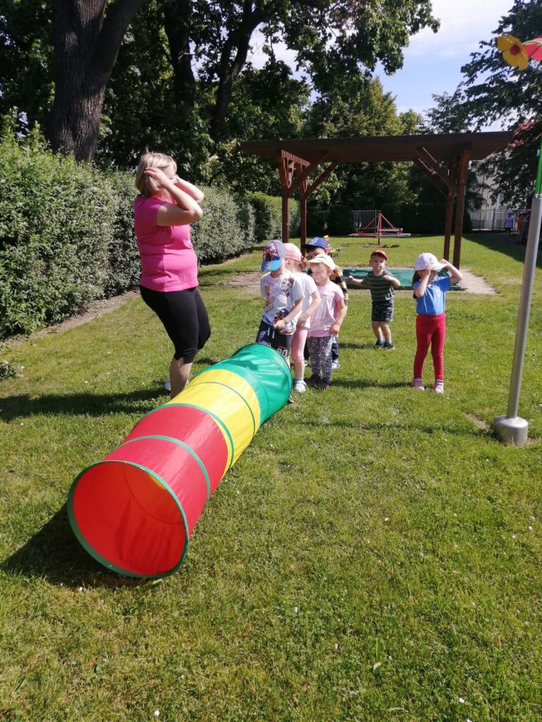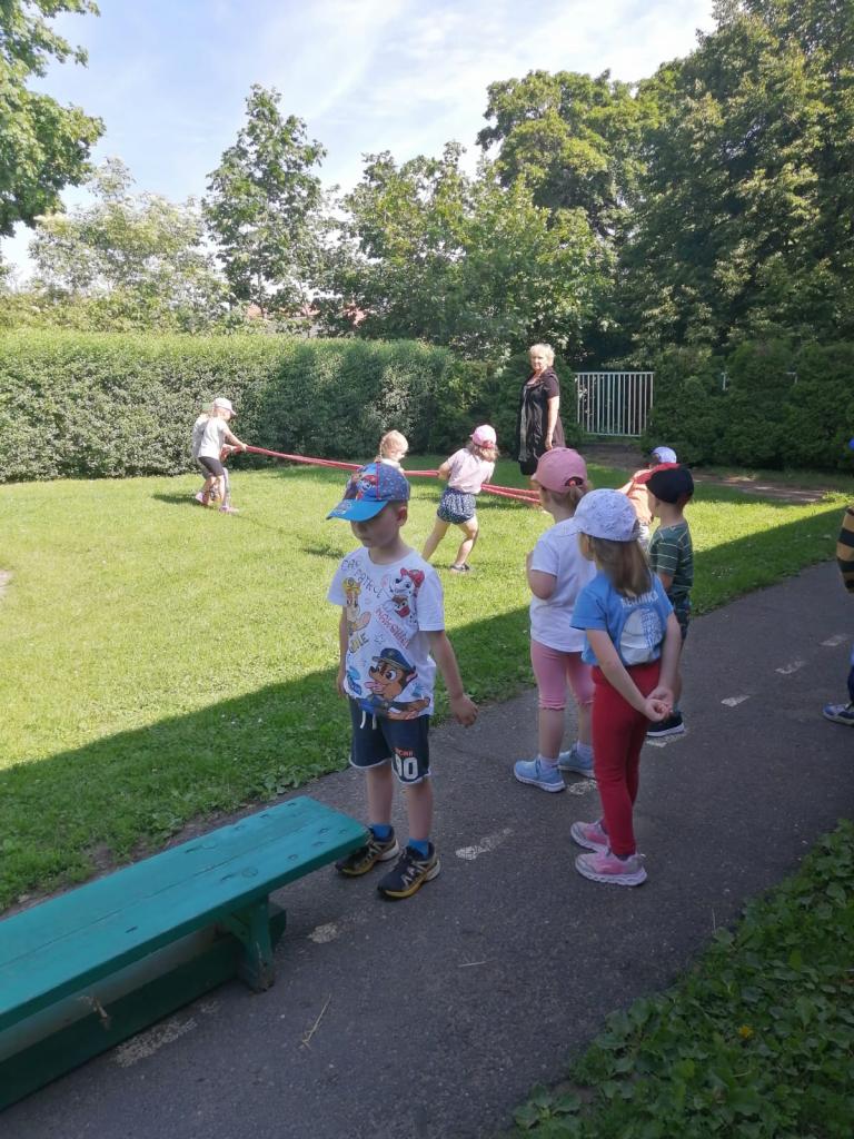 Sportovní olympiáda na školní zahradě ke dni dětí.