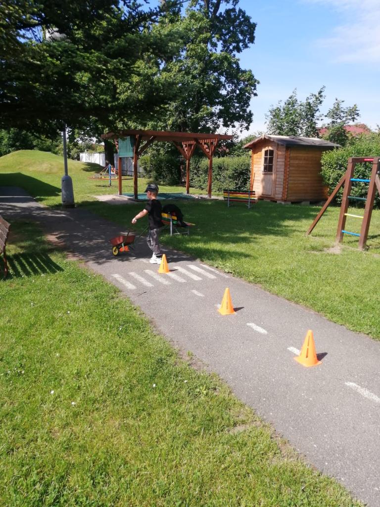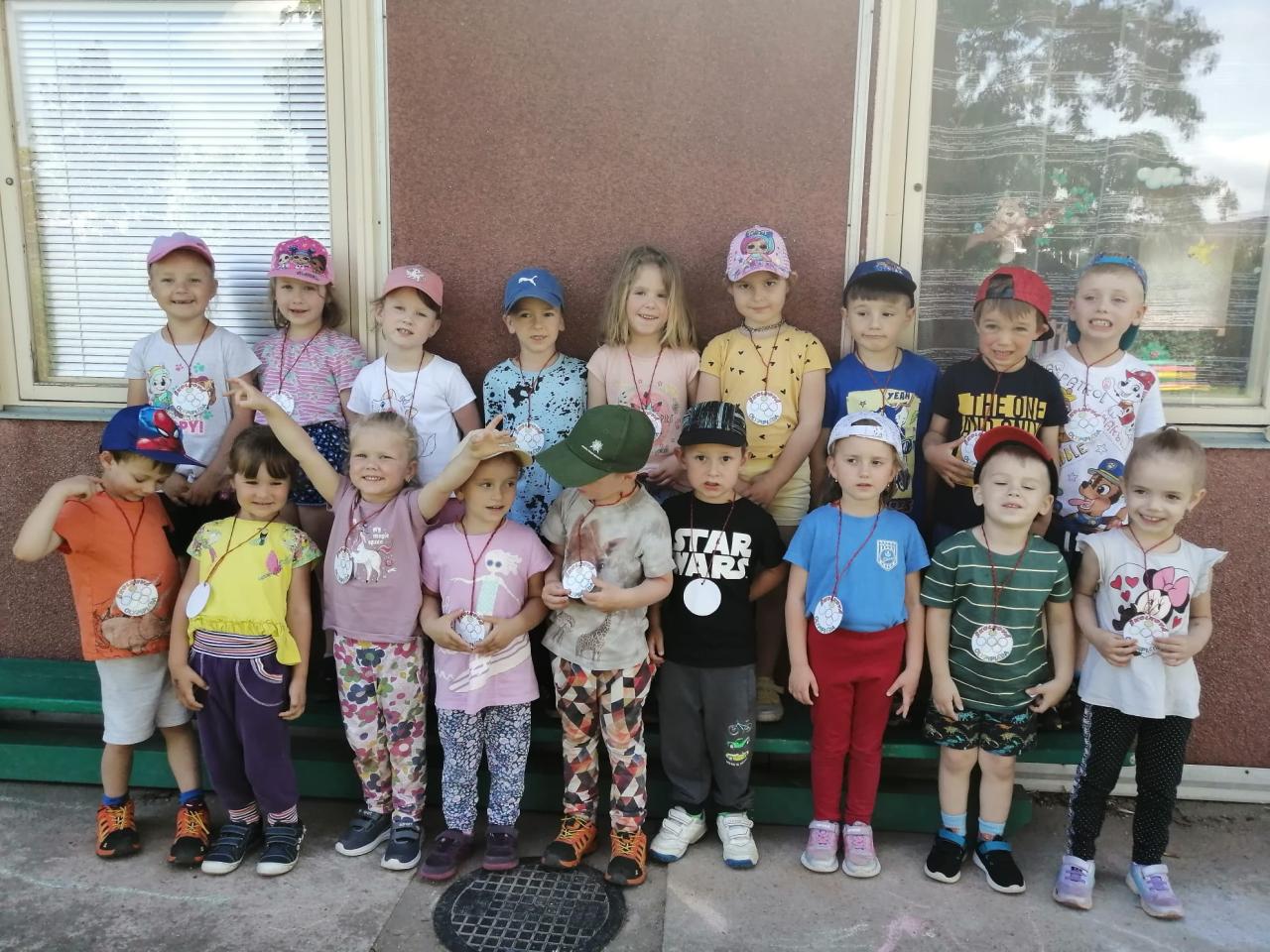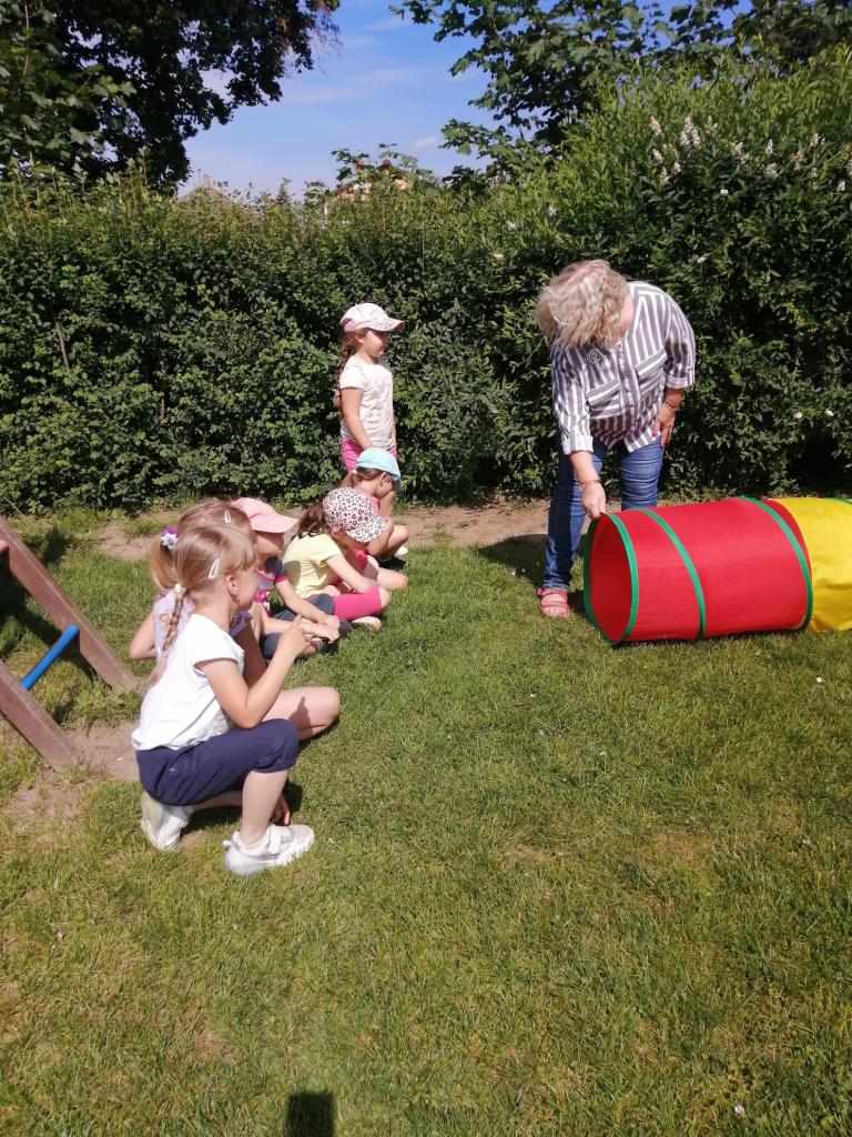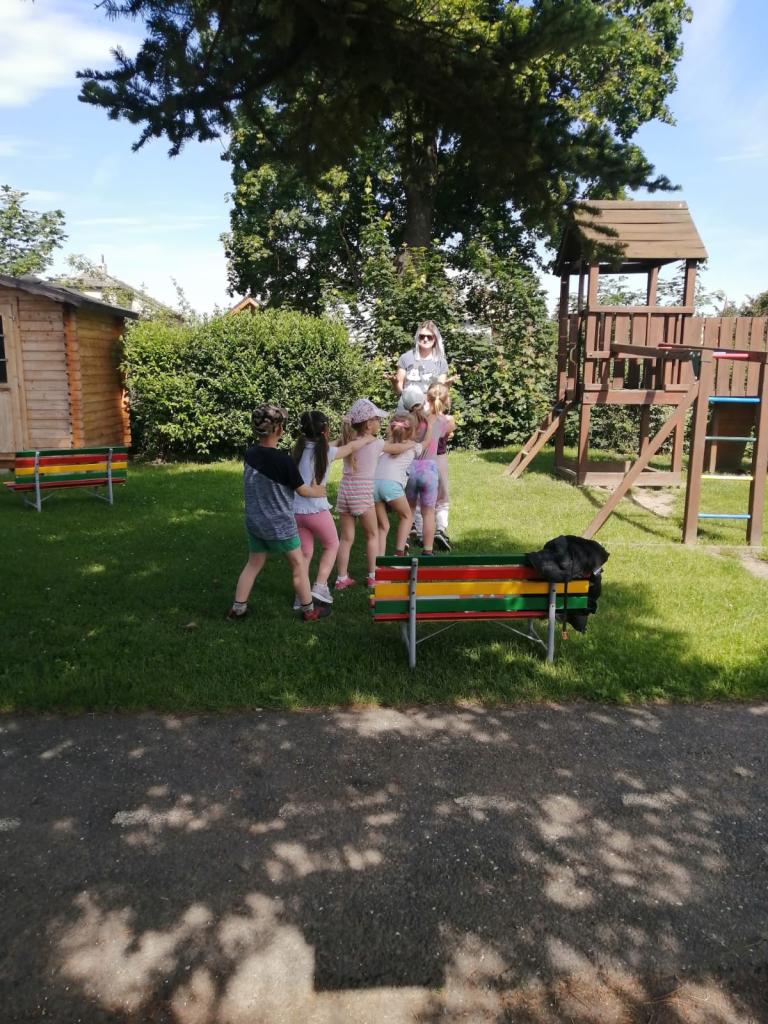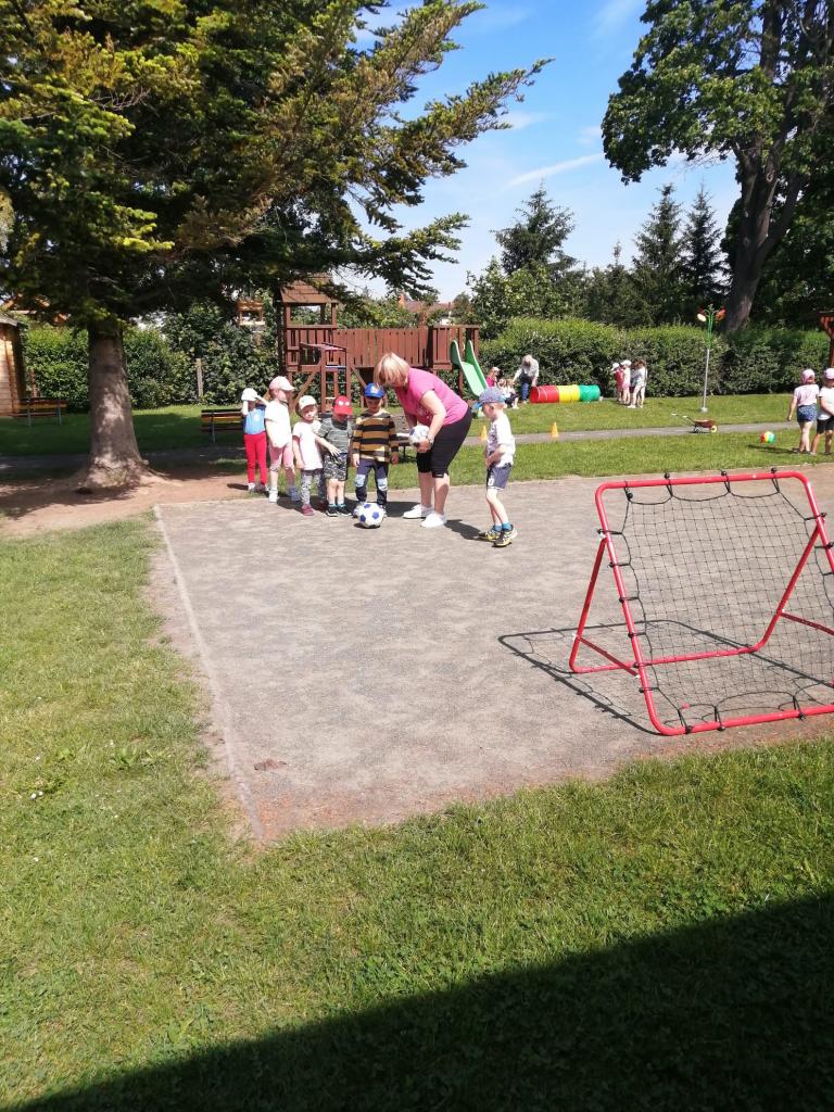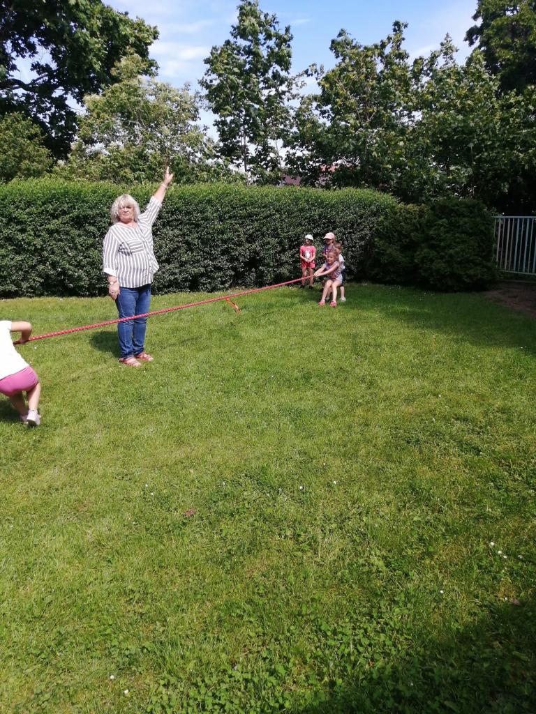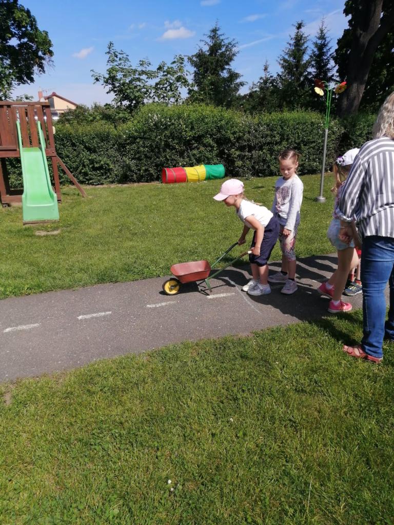 Sportovní olympiáda na školní zahradě ke dni dětí.