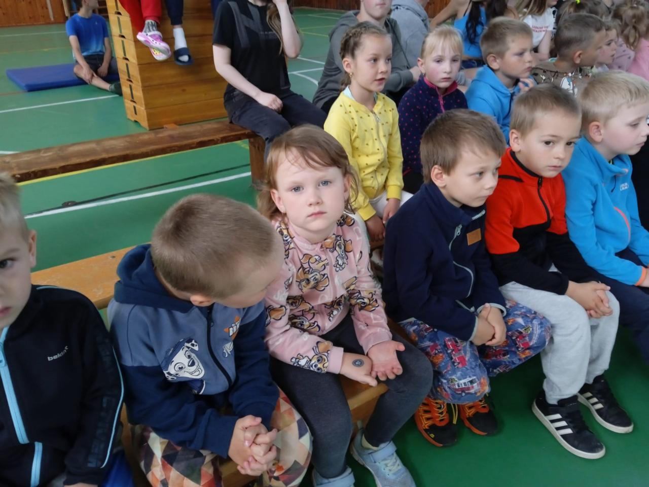 Vystoupení tanečních skupin ZUŠ Čáslav v tělocvičně ZŠ Vrdy.